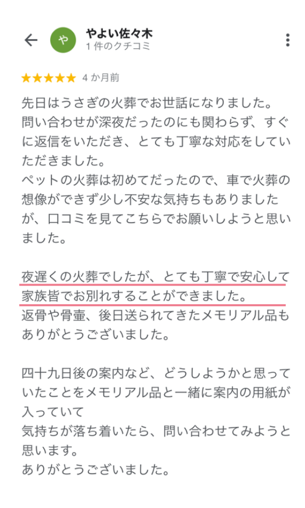 言葉遣いが悪い、態度が悪い、服装に清潔感がみられない、火葬車がボロボロで汚い、時間に余裕がなく、急かされ、作業のように扱われる・・・