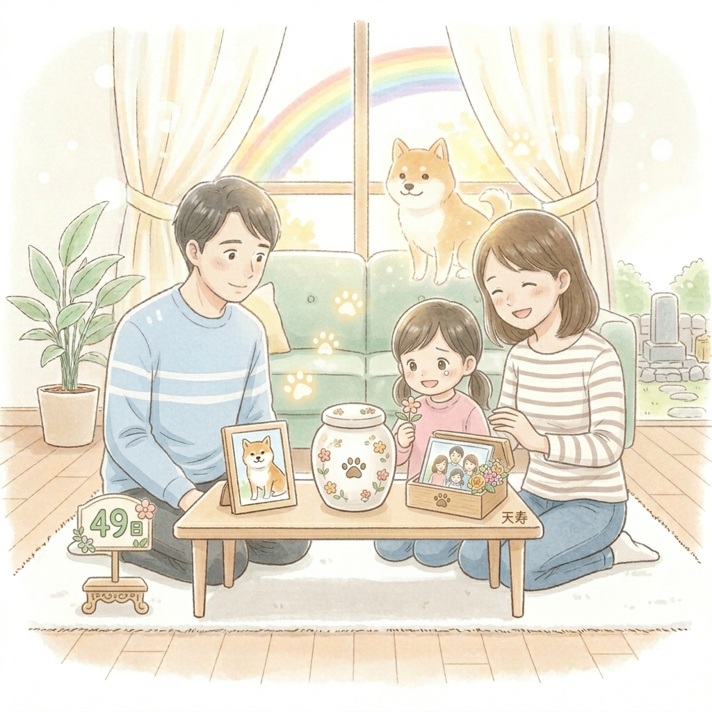 「四十九日を迎えるまでの間、ペットちゃんはまだお部屋にいますよ」