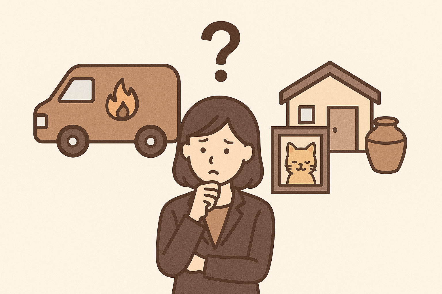 知らないと損する!訪問火葬と斎場火葬の違いを簡単に解説 ペットちゃんのお見送りには「訪問火葬」 と 「斎場火葬」 の2つがあります。 費用・流れ・向いている人が大きく違うため、知らずに選ぶと …